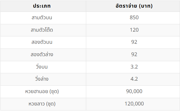 หวยฮิต เว็บหวยออนไลน์ ที่ให้อัตราจ่ายสูงสุด สำหรับหวยรัฐบาลไทย สามตัวบนบาทละ 900 และสองตัวล่างบาทละ 90 รวมถึงหวยลาว หวยฮานอย หวยหุ้น และหวยยี่กีที่จ่าย สามตัวบนบาทละ 850 และสองตัวล่างบาทละ 92 มีระบบการจ่ายเงินอัตโนมัติที่รวดเร็วและปลอดภัย